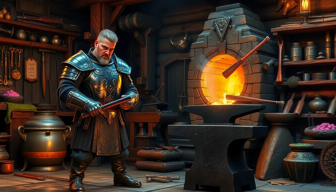 Players need specific tools and materials to smith effectively. An anvil serves as a primary tool for forging items. Furnaces are required to smelt ores into bars. Essential materials include ores like copper, tin, iron, and coal for crafting various metals. Crucibles facilitate the process for higher-tier materials, while the hammer is necessary for working metal on an anvil. Advanced players should also consider utilizing equipment like the Infernal Steel Bar to enhance production efficiency. Gathering resources in the game world contributes significantly to unlocking new crafting opportunities.